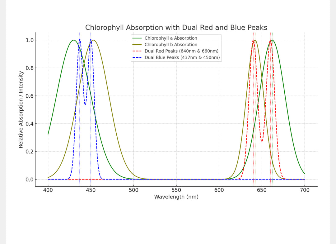 - Triple blue peaks, dual red, far red, and emerald green — mimicking natural sunlight.
